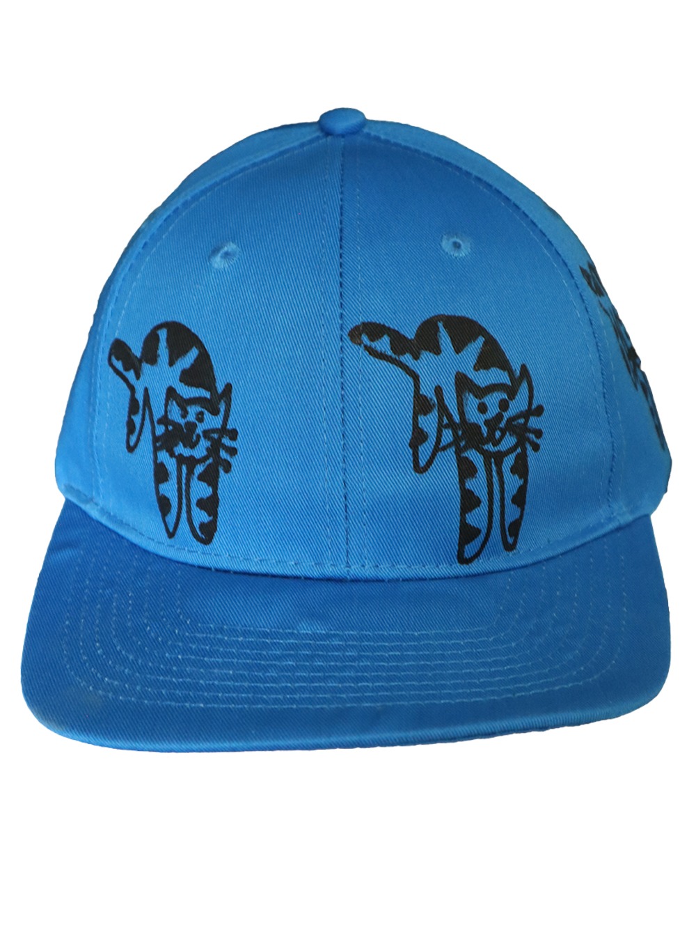 Black Jumping Cats hand painted on a Royal Blue Baseball Cap.