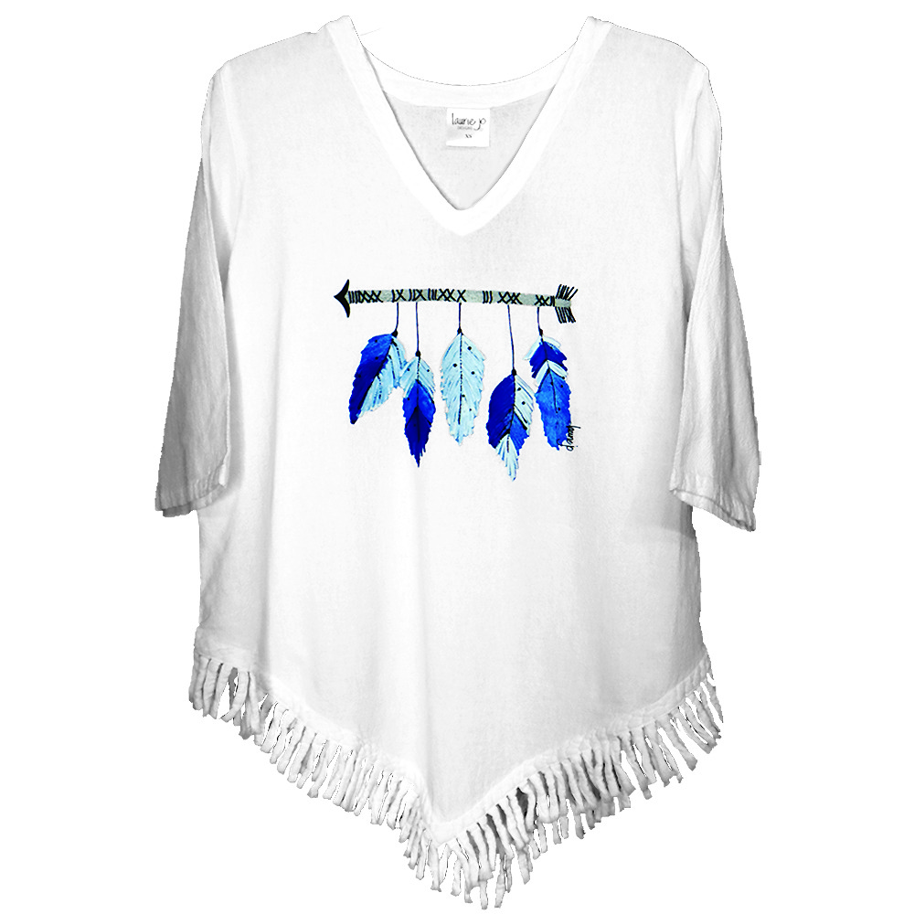 Fringe crinkle cotton top. Loose fit, medium weight, with the Feathered Arrow design.