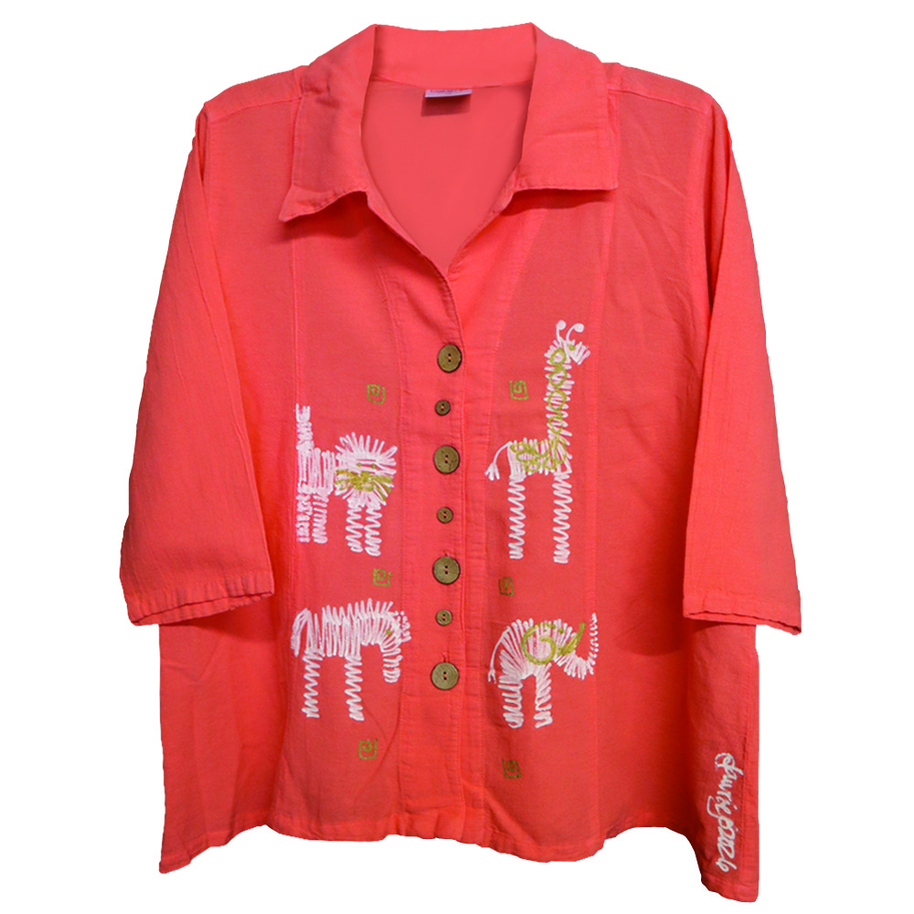 Novelty Button top hand painted with Zoo design. Flowy and loose. Wear as a jacket or a top.