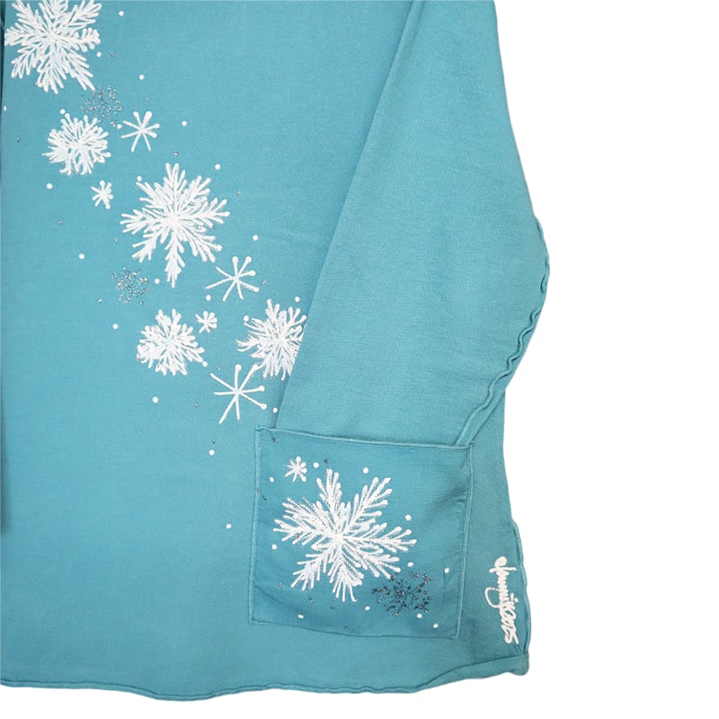 Lightweight and comfortable, pre-shrunk cotton, French terry pullover. Hand painted with Snowflakes. Casual and comfortable.
