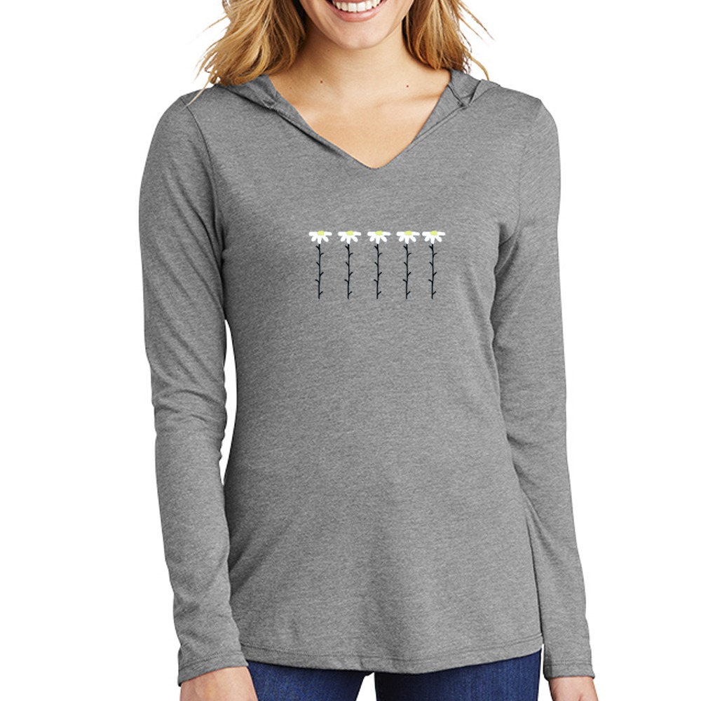 Lightweight long sleeve hoodie. Tri-blend made of 50/25/25 poly/cotton/rayon. Split V-Neck with a raw edge. Super soft. Pre-shrunk.