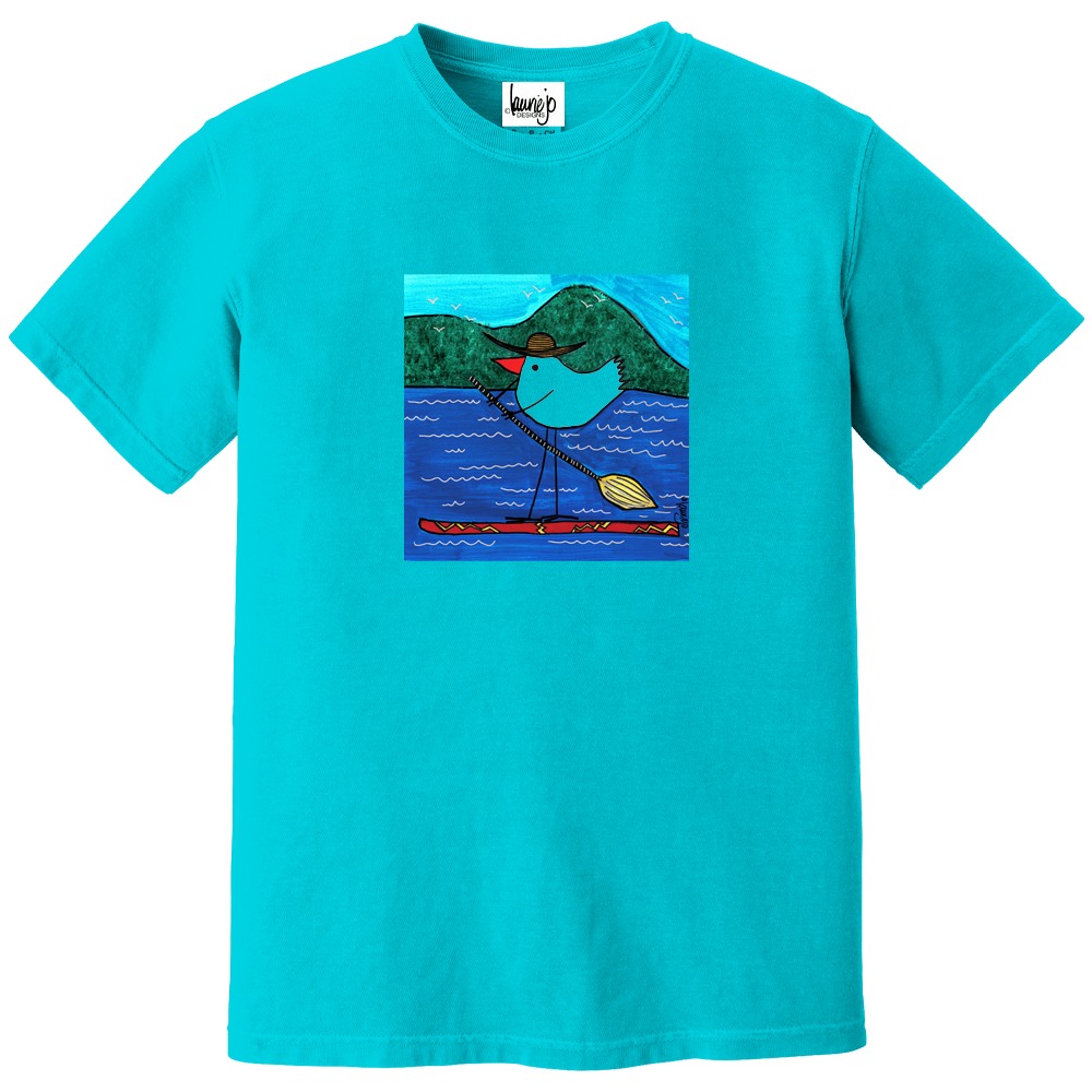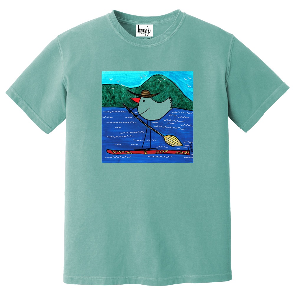These tees are cut for men, but can be worn by anybody. The shirt and sleeve length are longer than the ladies tee. Hand painted and printed designs. Wash inside out, cold water, hang dry. If you put this in the dryer for a long length of time, it will shrink up in the length, but not a lot in the width.