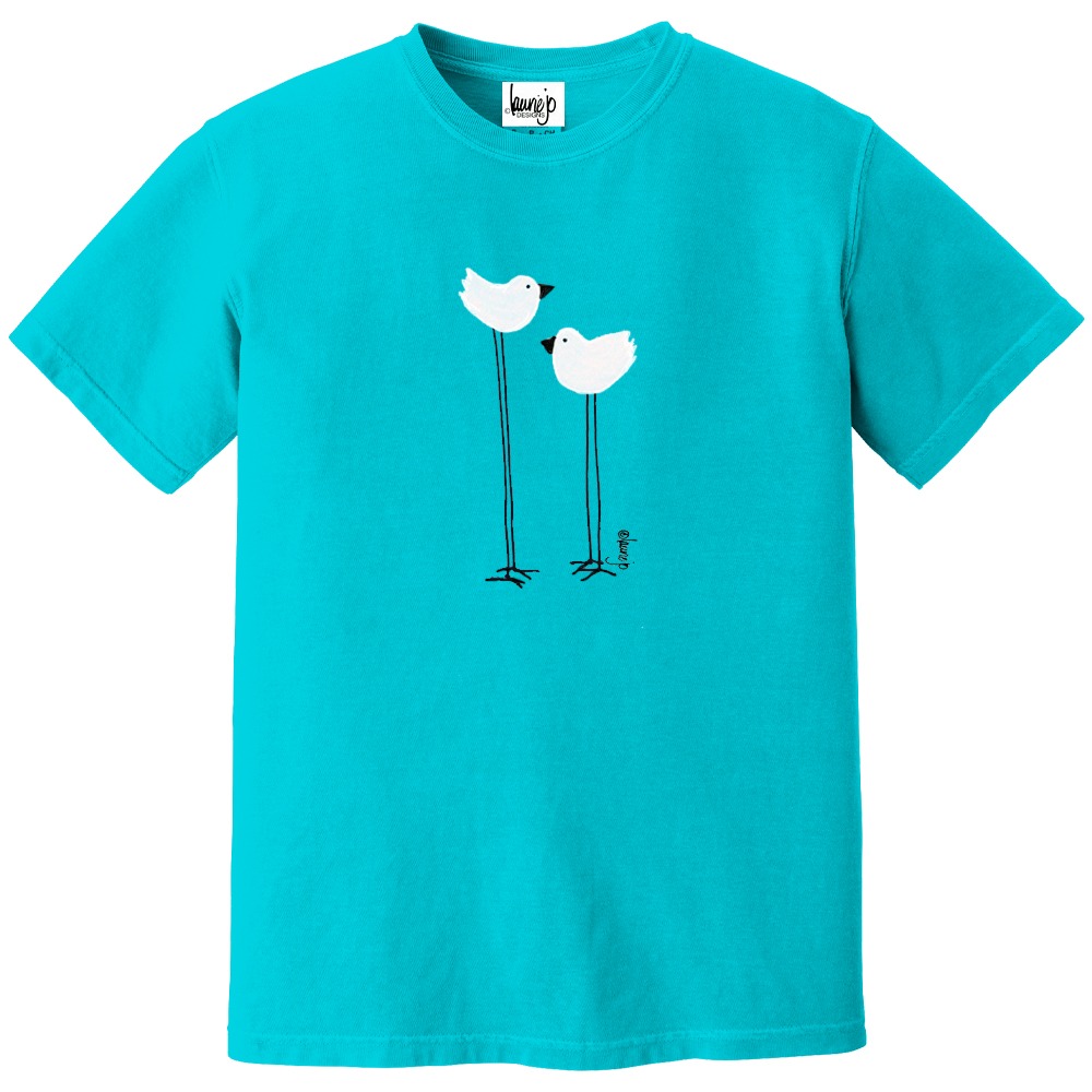 Unisex, Short sleeve, pre-shrunk cotton, Garment Dyed, Classic t-shirt. Crew neck with White Birds.